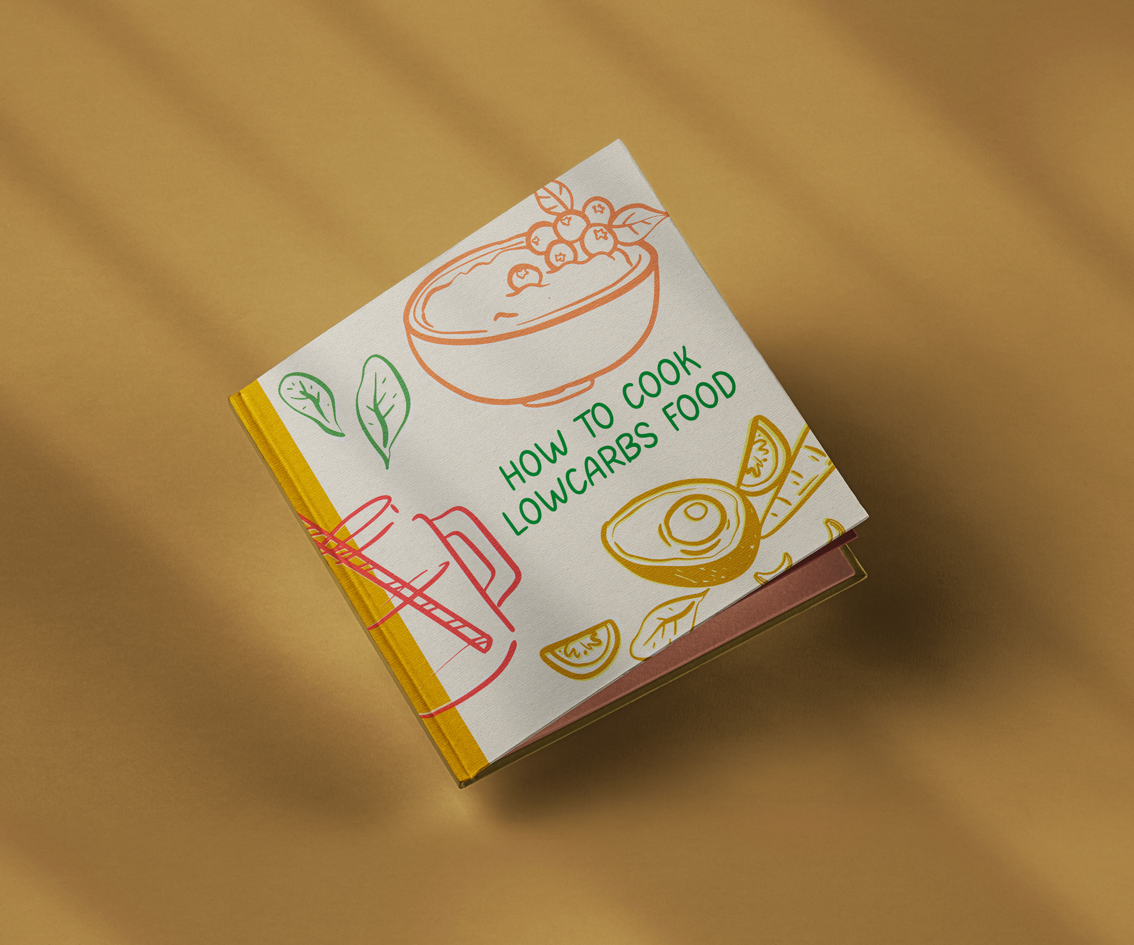استخدمتُ أسلوب الإليستريشن في تصميم هذا الغلاف، لأنني رأيت أن استخدام صور طعام حقيقية سيكون مملًا وتقليديًا. قمتُ بالبحث عن رسومات تعبّر عن الطعام الصحي، ثم عدّلت ألوانها لتتناسب مع الفكرة العامة للتصميم. اخترتُ اللونين الأحمر والأصفر لأنهما من الألوان التي تفتح الشهية، بينما استخدمتُ اللون الأخضر لأنه يرمز إلى الصحة والحياة. تم تنفيذ هذا الغلاف باستخدام برنامج ادوبي فوتوشوب