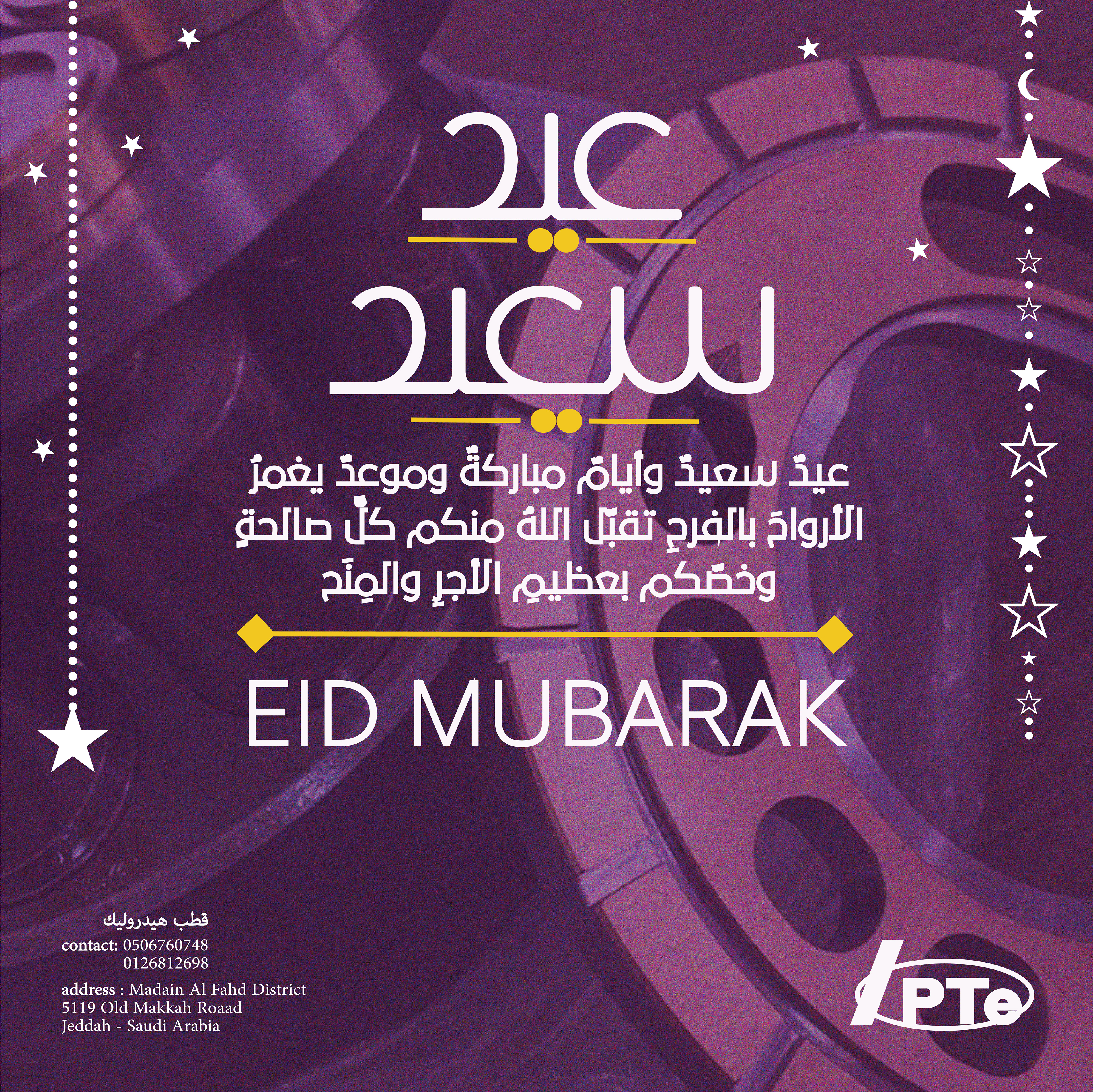 هنا قمتُ بتصميم تصاميم دينية لصالح شركة قطب هيدروليك وهي تهاني بمناسبة شهر رمضان المبارك وعيد الفطر / عيد الأضحى راعيتُ في هذه التصاميم الحفاظ على هوية الشركة البصرية مع إضافة طابع روحاني وبسيط